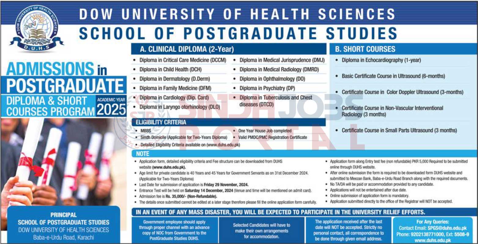 The Legislature of Sindh through an ACT established Dow University of Health Sciences with Dow Medical College, Sindh Medical College, and Ojha Institute of Chest Diseases as its constituent entities.
