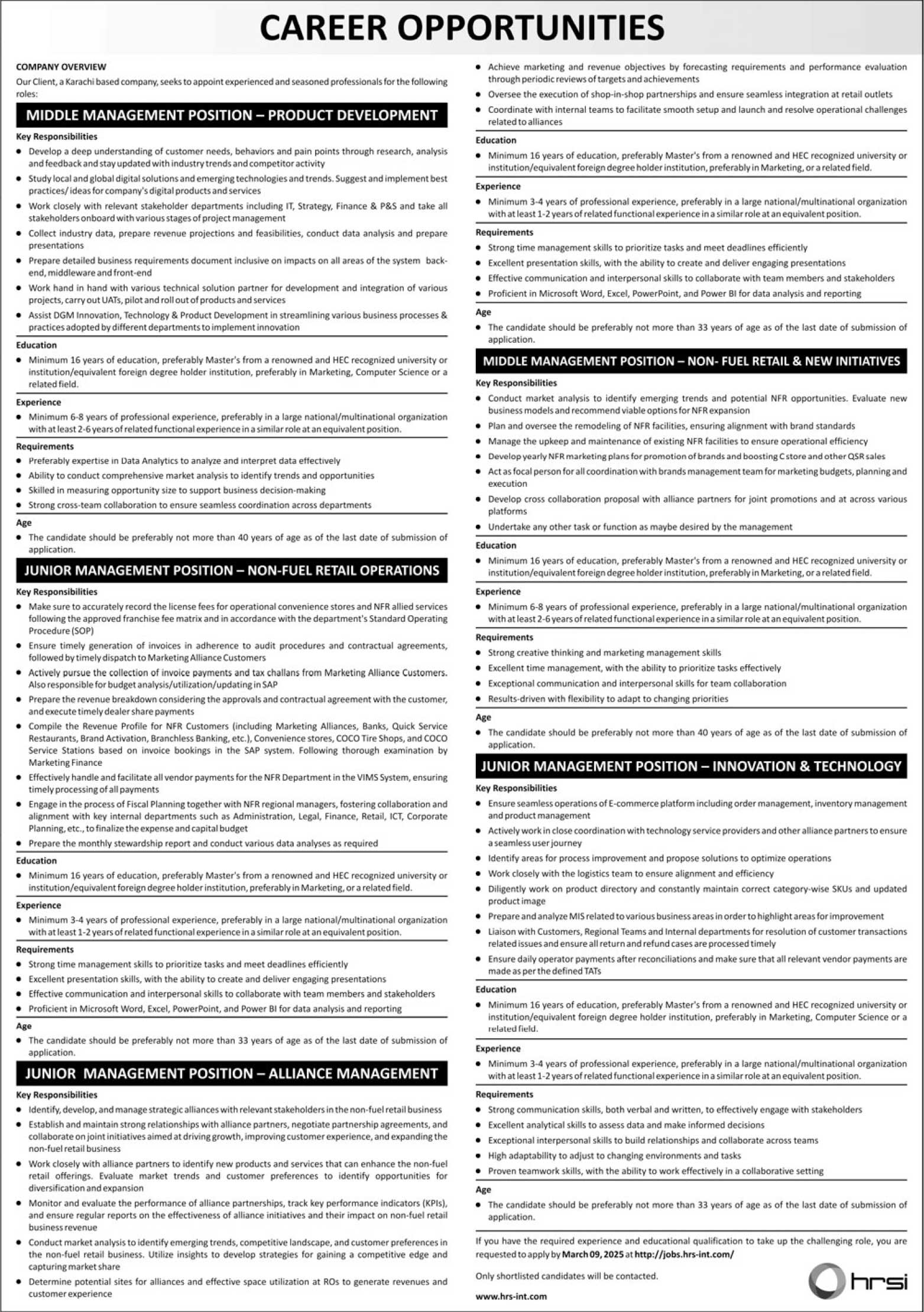Interested candidates may visit our website at www.hbfc.com.pk/careers for further details regarding job responsibilities and for submission of ONLINE application latest by March 09, 2025.
