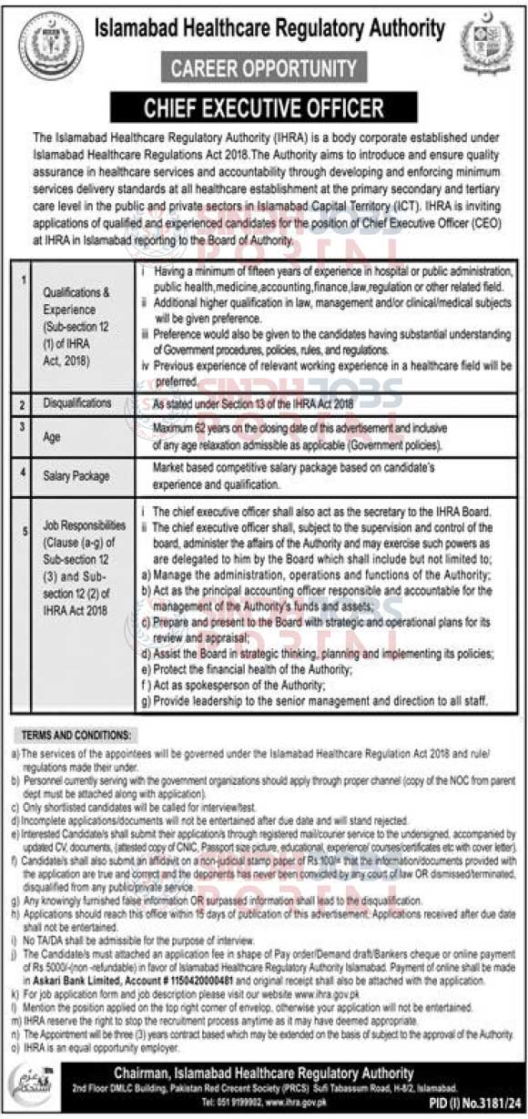 | Department / Organization | Islamabad Healthcare Regulatory Authority |