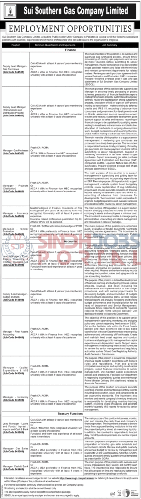 • Interested candidates are encouraged to visit https://www.ssgc.com.pk/careers for details / job description and to apply online.